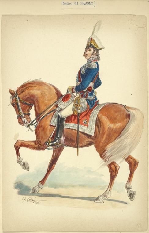 My first care was to present myself to King Joachim, who was always easy of access, notwithstanding the self-important airs assumed by the chamberlains on duty. Whilst I was awaiting an interview in a saloon contiguous to that of the courtiers in waiting, the Duke Girella, Prefect of the Palace, related to me all the dirty intrigues which were practised by many to obtain employment at Court. On being admitted to the presence of King Joachim, I showed him the authorization he had himself given me in 1802 to proceed to Egypt. He likewise perused with attention my statement of service, which I handed hm, and the charge committed to my care by Massena of organizing a regiment of Calabrians. As soon as he had finished reading these documents, I said that I expected from his justice the rank of Colonel. The King replied, that in appointing me one of his officers of ordnance, he should give me a proof of the favourable opinion he held of me. I recollect that I was so engrossed by admiration of the elegance of his appearance, and the affability of his address, that I omitted expressing my thanks. He talked to me a great deal about the Neapolitan army, and manifested a confidence in us that even exceeded my own; and, God knows that was not small. His conversation filled me with such delight, that had it not been for the fear I entertained lest he should mistake my ardour of patriotism for courtier-like flatter, I could have fallen at his feet and worshipped him. It seemed to me that I beheld in him the Charles XII of the Neapolitans; and with my mind full of such ideas, I retired amidst the amiable salutations of the courtiers, who had not failed to remark the length of my interview with the King. (pages 250-251)