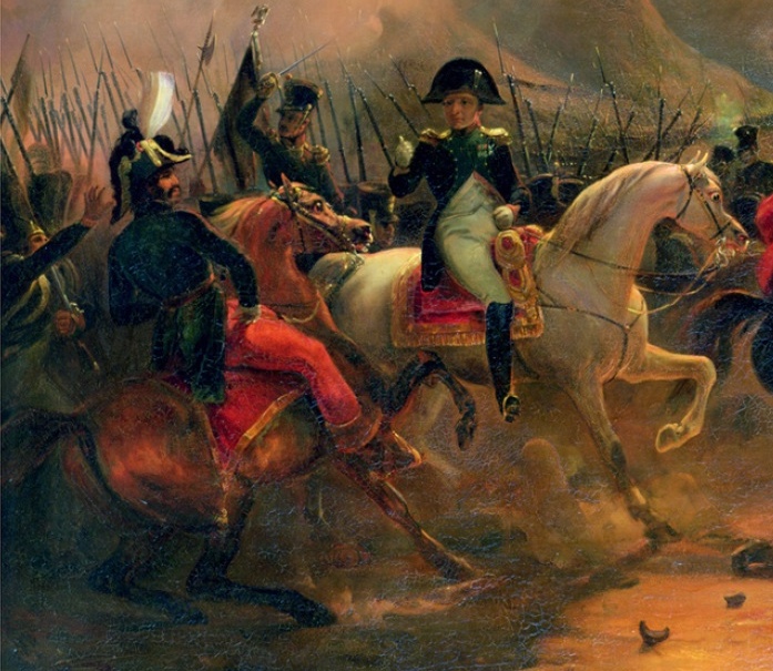 [Image: Detail of Murat & Napoleon from Bataille de Smolensk 17 Aout 1812, by Jean-Charles Langlois (1839)]